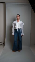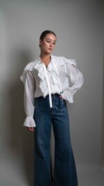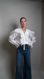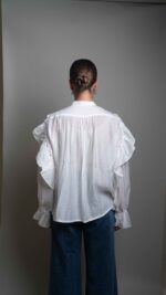 Anna semi-sheer ruffled blouse, white.