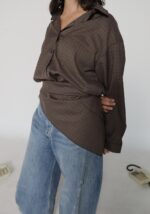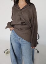 plaid scarf shirt set, brown.