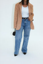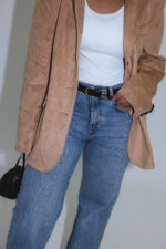 oversized suede blazer, biscuit.